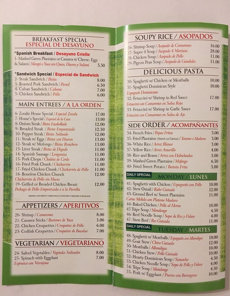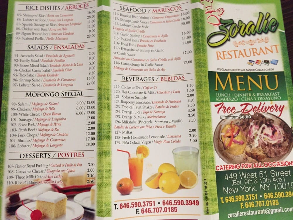 Zoralie Restaurant in Hell's Kitchen offers a fusion of Puerto Rican, Dominican, and Spanish cuisine. Known for its flavorful dishes like moist pernil, perfectly seasoned arroz con gandules, and comforting mofongo with savory gravies, this unassuming gem has garnered rave reviews from customers. The cozy atmosphere, gender-neutral restrooms, and free Wi-Fi make it a welcoming dining spot for all. Customers praise the large portions, reasonable prices, and friendly staff. Specialties like pernil, boneless fried chicken, and tres leches cake have left diners impressed. Although seating is limited, the delicious food and warm service make Zoralie a must-visit spot for lovers of Latin American cuisine.